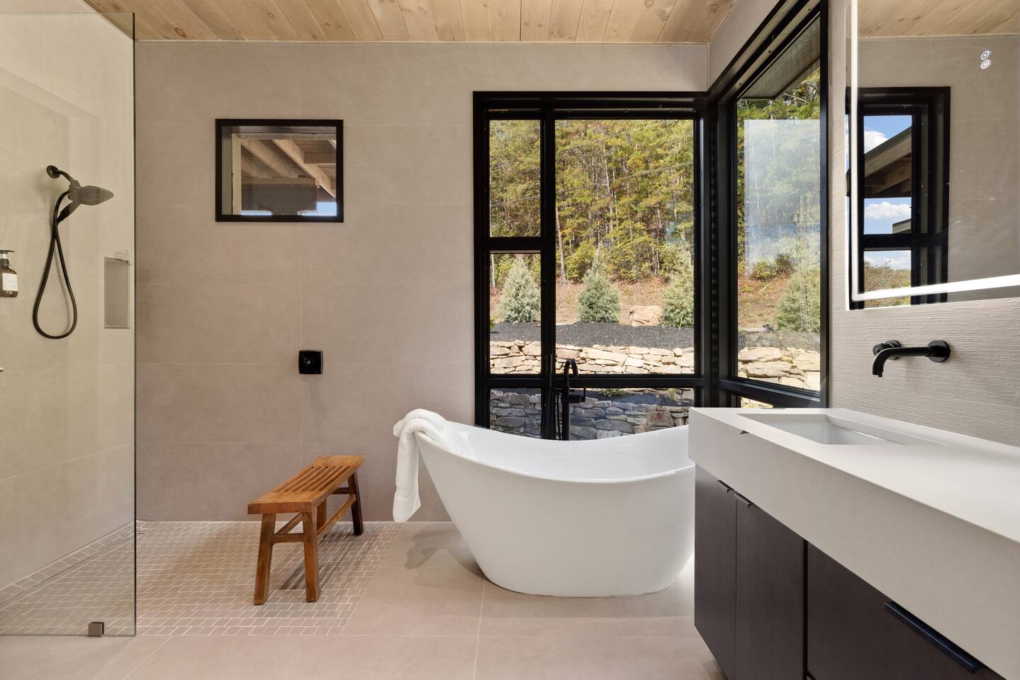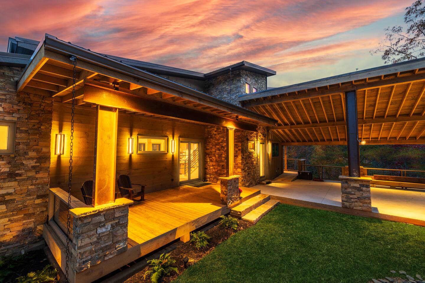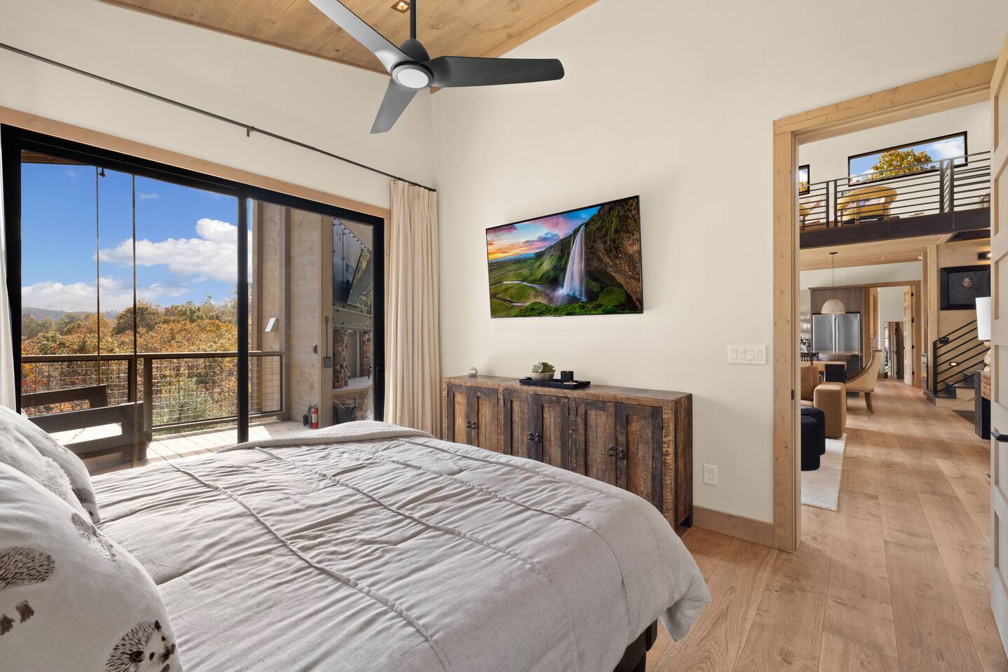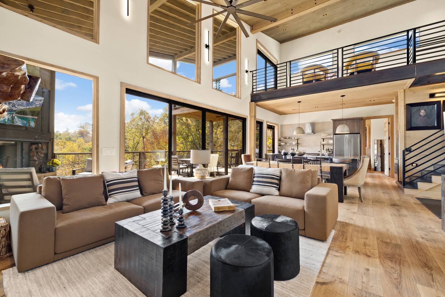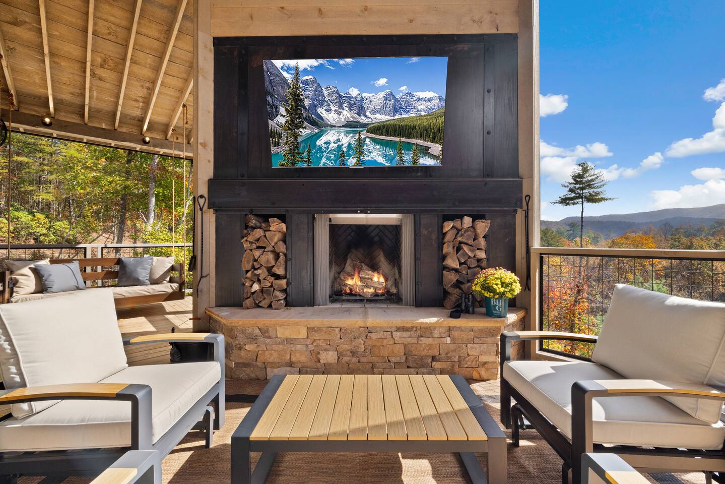 The Ridge is a brand new luxury mountain retreat just minutes to downtown Blue Ridge. Escape to this newly built luxury home just minutes to downtown Blue Ridge, GA. This custom home offers expansive mountain views the minute you walk in door. The soaring ceilings with floor to ceiling windows create the perfect indoor / outdoor living space for your enjoyment. We enjoy cooking and entertaining so the layout, with garage door window from the kitchen to the outdoor grilling station, is perfectly designed. No expense was spared on the finishes, furnishing, accessories and amenities so that our guests can feel at home. Our home is perfect for any kind of retreat; yoga, health/wellness, spiritual, family or business. We have equipped the home with the following amenities: Tesla Charging Station, Large Steam Shower, Deck Swing Bed for naps, Pool Table, Games, Gas Range, Outdoor Fire Pit with mountain views and so much more. Enjoy long or short stays to make your holiday one to remember.