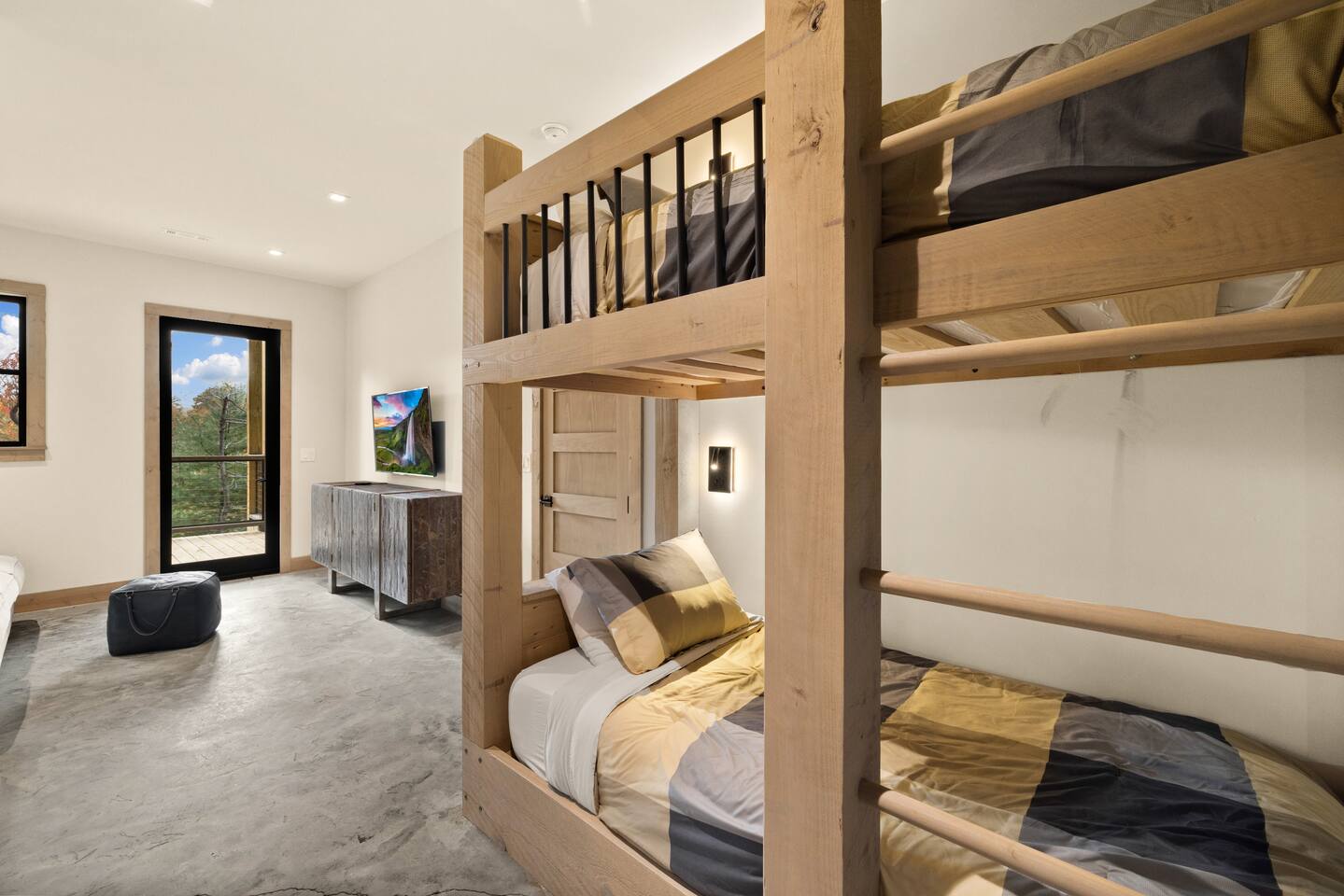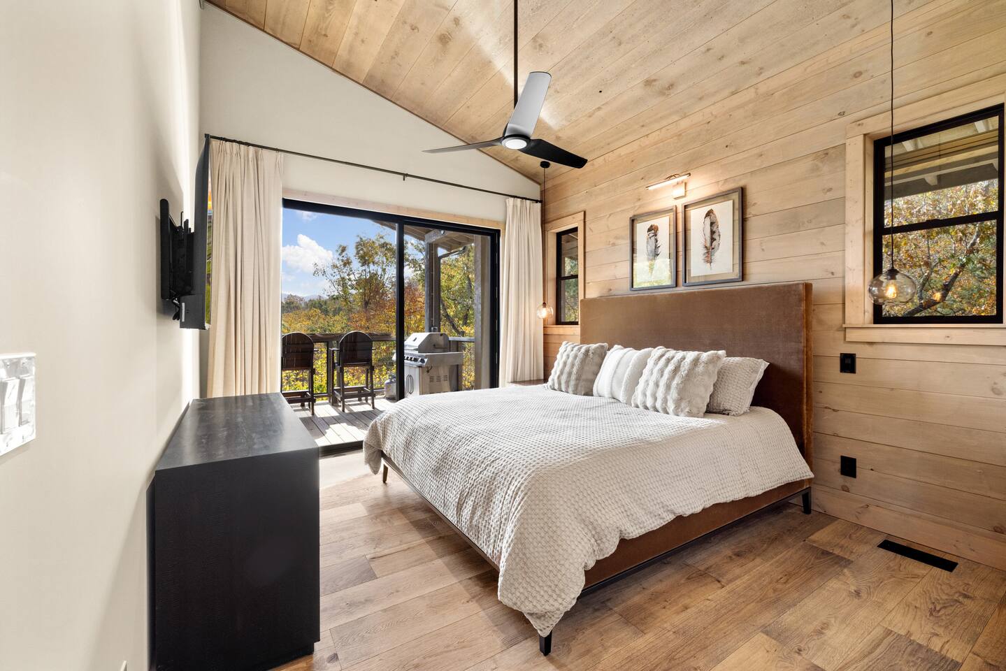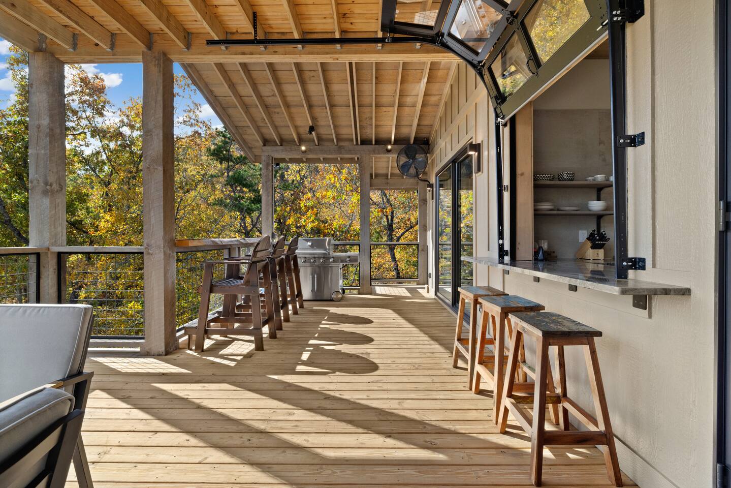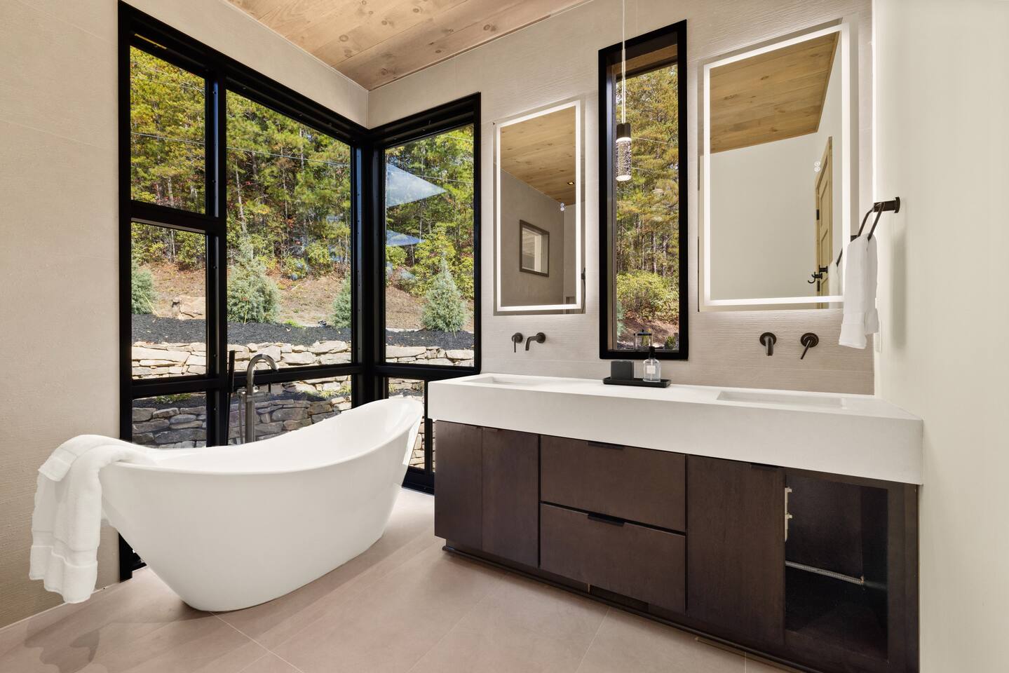 The Ridge is a brand new luxury mountain retreat just minutes to downtown Blue Ridge. Escape to this newly built luxury home just minutes to downtown Blue Ridge, GA. This custom home offers expansive mountain views the minute you walk in door. The soaring ceilings with floor to ceiling windows create the perfect indoor / outdoor living space for your enjoyment. We enjoy cooking and entertaining so the layout, with garage door window from the kitchen to the outdoor grilling station, is perfectly designed. No expense was spared on the finishes, furnishing, accessories and amenities so that our guests can feel at home. Our home is perfect for any kind of retreat; yoga, health/wellness, spiritual, family or business. We have equipped the home with the following amenities: Tesla Charging Station, Large Steam Shower, Deck Swing Bed for naps, Pool Table, Games, Gas Range, Outdoor Fire Pit with mountain views and so much more. Enjoy long or short stays to make your holiday one to remember.