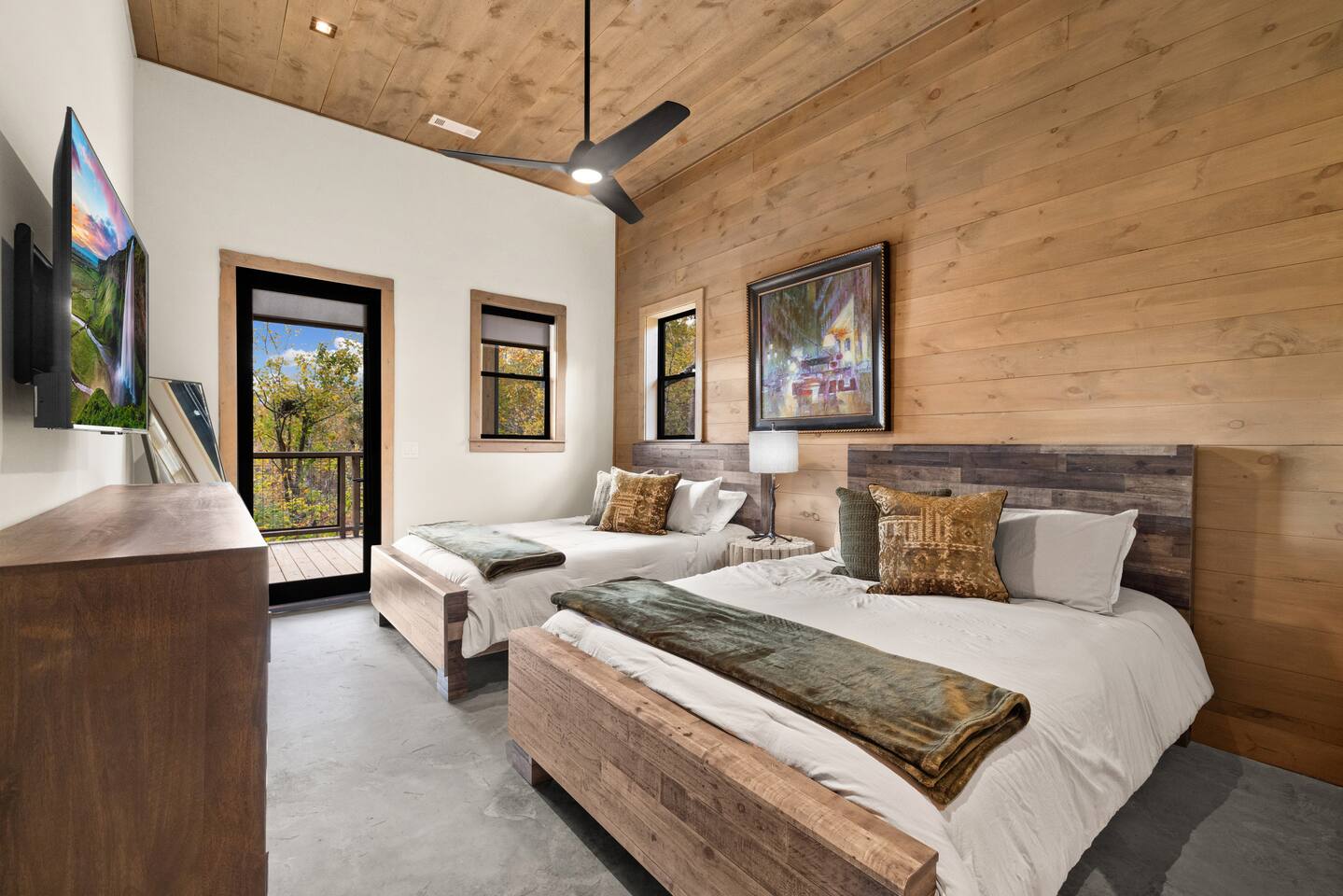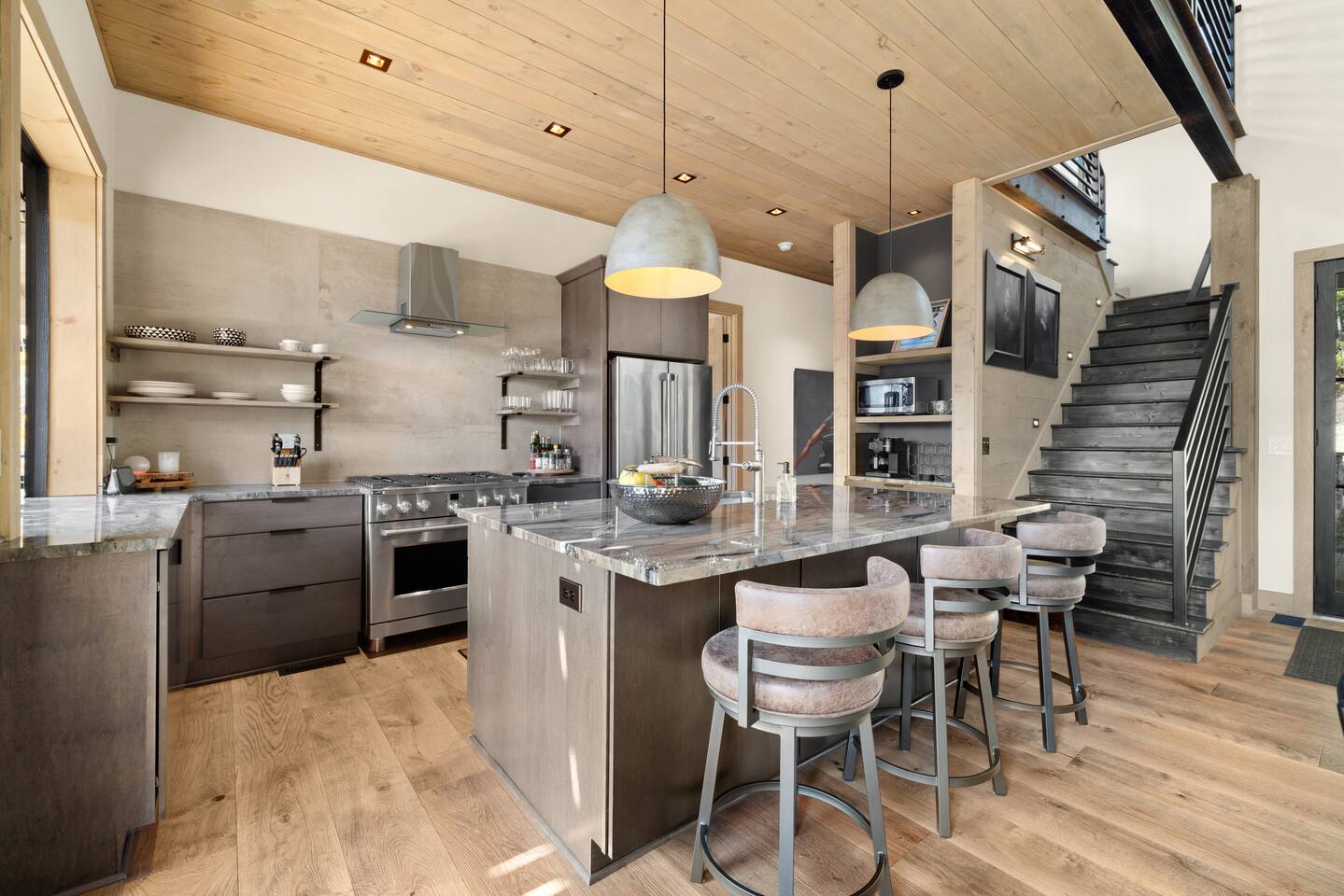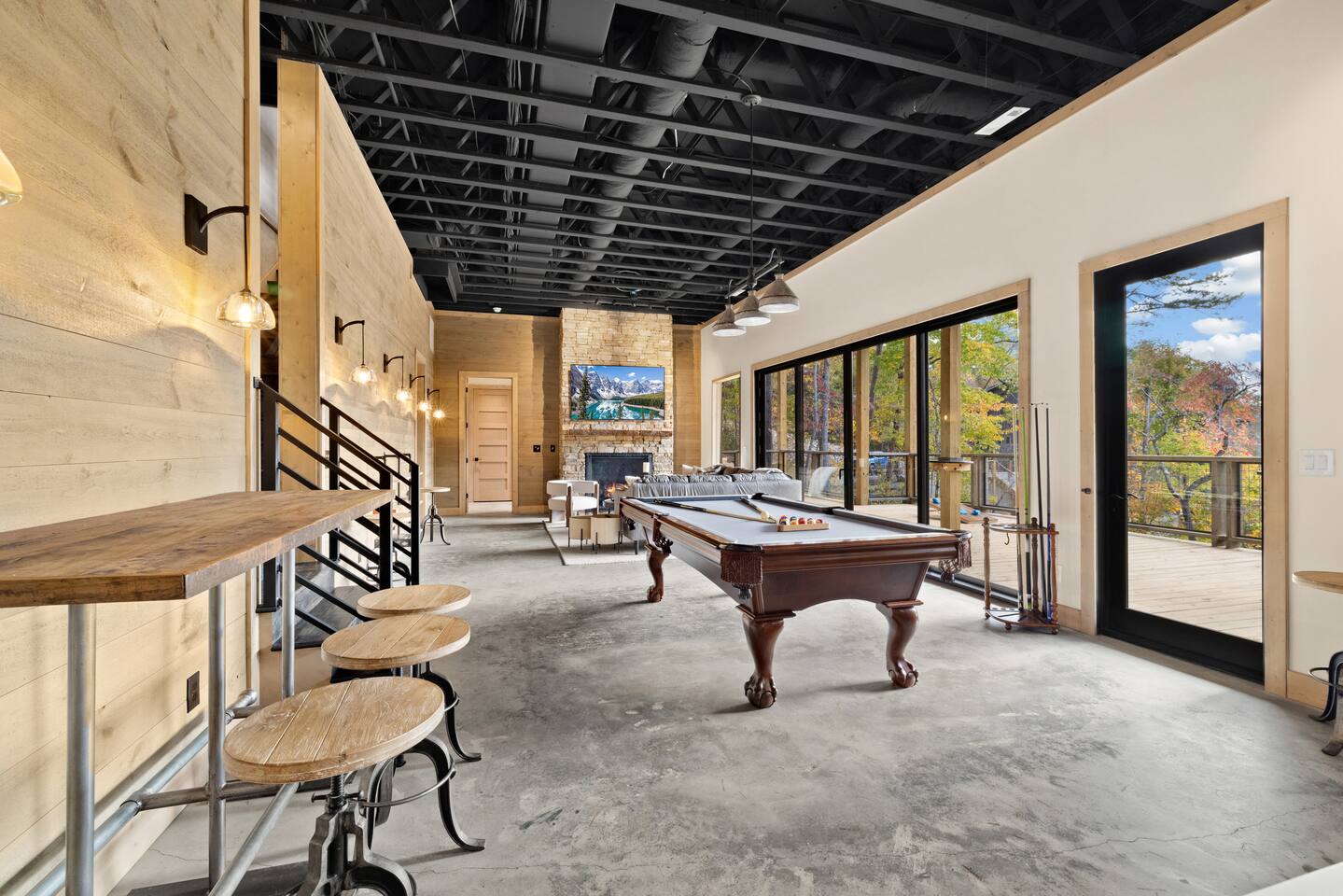 Open floor plan with vaulted ceilings and sliding glass doors to see gorgeous mountain views. There are 3 decks to take in the vies. Main level and lower level decks are expansive for entertaining. Loft deck looks over main deck and has the best mountain views.